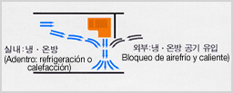 La cortina de aire permite que el trafico fluya sin obstrucciones a traves de aberturas de la cortina de aire mientras mantiene separados los ambientes.